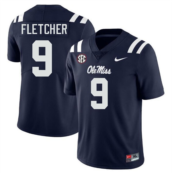 • Men's Ricky Fletcher Navy Ole Miss Rebels #9 College Football Stitched Jersey