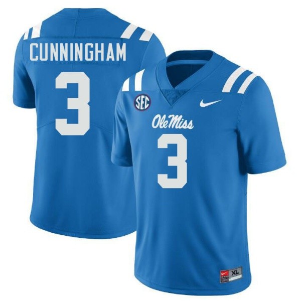 • Mens Caleb Cunningham Powder Blue Ole Miss Rebels #3 College Football Alumni Jerseys