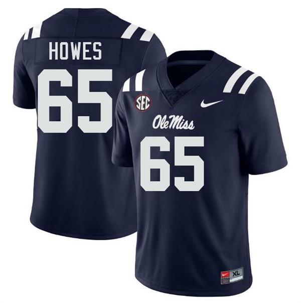 • Mens Connor Howes Navy Ole Miss Rebels #65 College Football High School Jerseys