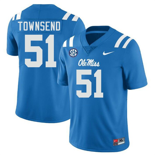 • Mens Delano Townsend Powder Blue Ole Miss Rebels #51 College Football NCAA Jerseys