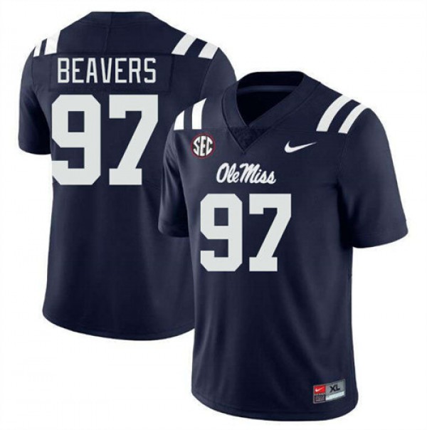 • Mens Kamron Beavers Navy Ole Miss Rebels #97 College Football Embroidery Jersey