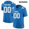 • Women Custom Powder Blue Ole Miss Rebels #00 College Football Replica Jersey