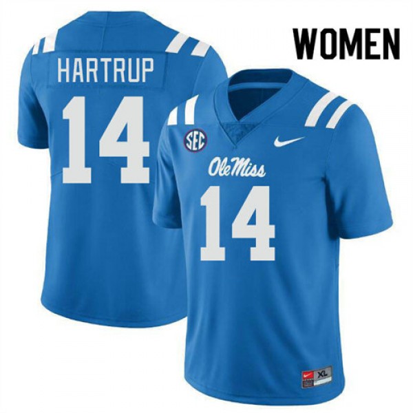 • Women Izaiah Hartrup Powder Blue Ole Miss Rebels #14 College Football Replica Jerseys