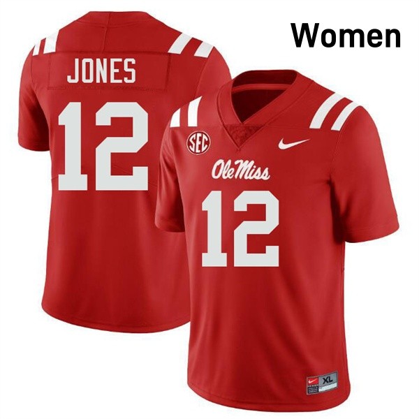 Women's Andrew Jones Red Ole Miss Rebels #12 College Football Game Jersey 628105-265