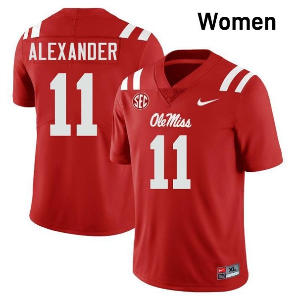 Women's Deuce Alexander Red Ole Miss Rebels #11 College Football University Jersey 477515-560