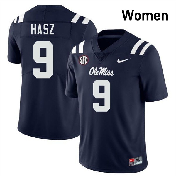 • Women's Luke Hasz Navy Ole Miss Rebels #9 College Football 2025-26 Jersey
