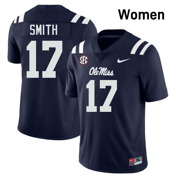 • Women's Maealiuaki Smith Navy Ole Miss Rebels #17 College Football Embroidery Jerseys