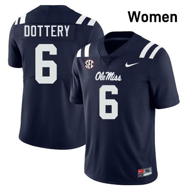 • Women's TJ Dottery Navy Ole Miss Rebels #6 College Football 2025-26 Jersey