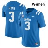 • Women Sage Ryan Powder Blue Ole Miss Rebels #3 College Football Alumni Jerseys