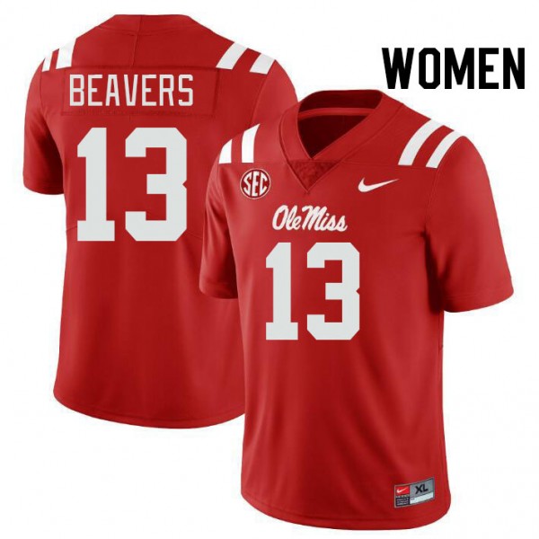 • Womens Cedrick Beavers Red Ole Miss Rebels #13 College Football NCAA Jersey