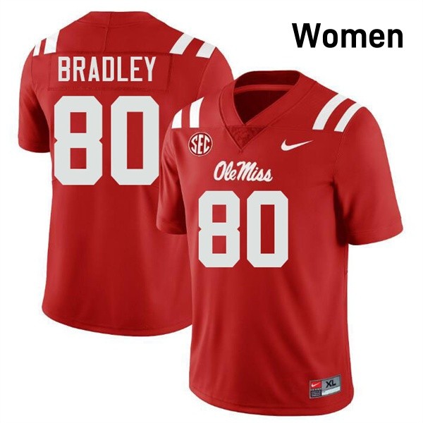 Womens Hayden Bradley Red Ole Miss Rebels #80 College Football NCAA Jerseys 328723-868