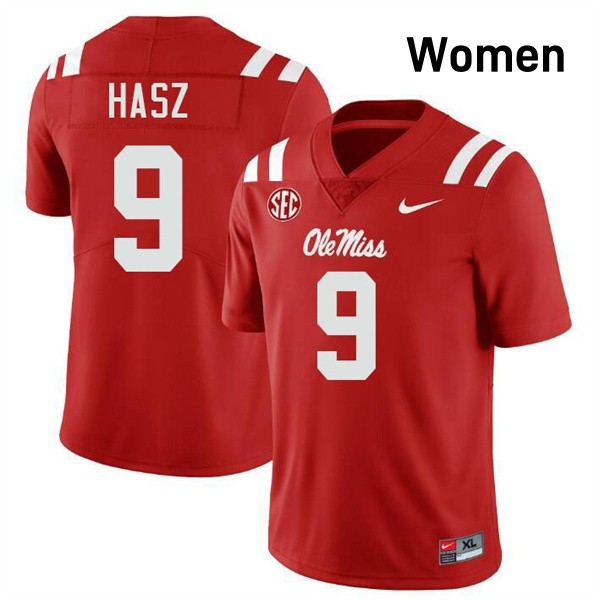 • Womens Luke Hasz Red Ole Miss Rebels #9 College Football Embroidery Jersey