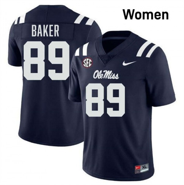 • Womens Mike Baker Navy Ole Miss Rebels #89 College Football NCAA Jersey