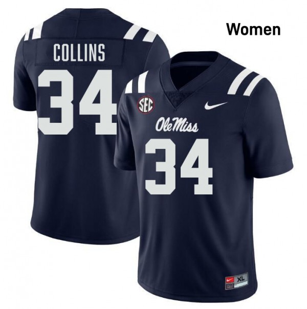 • Womens Raymond Collins Navy Ole Miss Rebels #34 College Football Replica Jersey