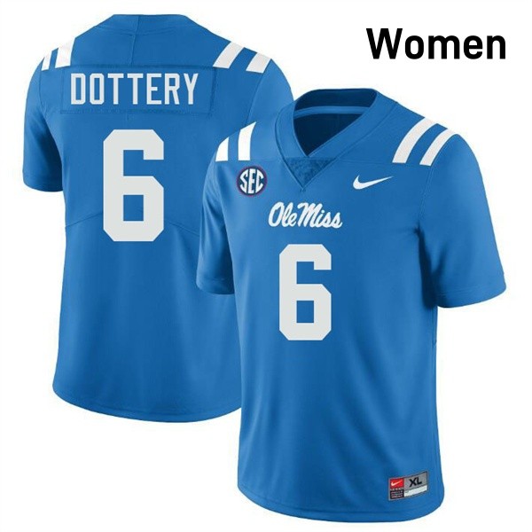 • Womens TJ Dottery Powder Blue Ole Miss Rebels #6 College Football NCAA Jerseys
