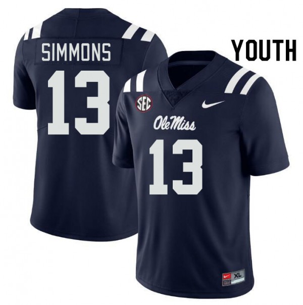 • Youth Austin Simmons Navy Ole Miss Rebels #13 College Football 2025-26 Jersey