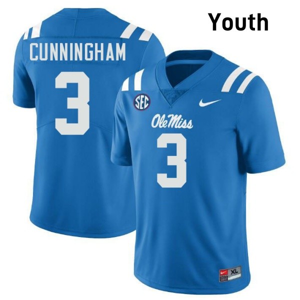 Youth Caleb Cunningham Powder Blue Ole Miss Rebels #3 College Football Official Jersey 849654-449
