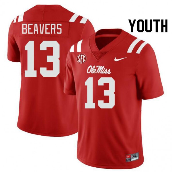 Youth Cedrick Beavers Red Ole Miss Rebels #13 College Football 2025 Jersey 719643-406