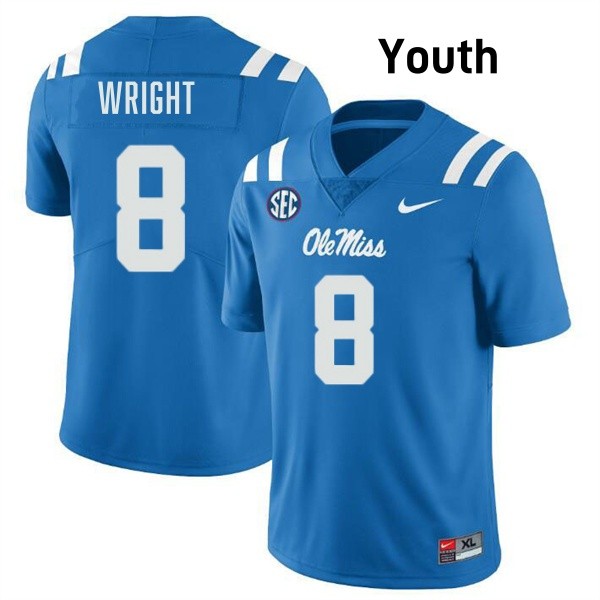• Youth Dae'Quan Wright Powder Blue Ole Miss Rebels #8 College Football 2025 Jersey