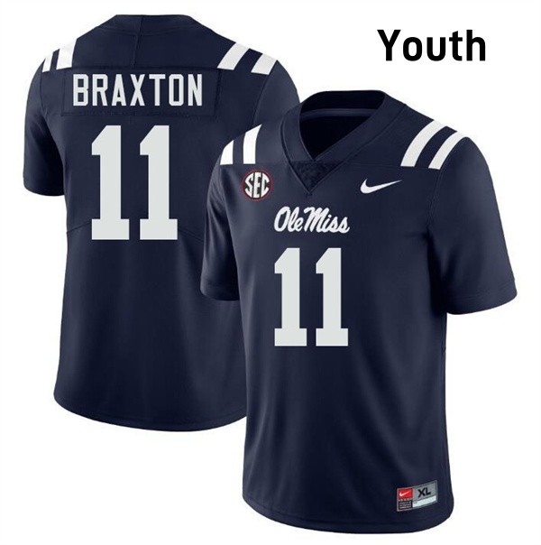 Youth Jaylon Braxton Navy Ole Miss Rebels #11 College Football Stitched Jersey 177100-597