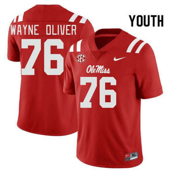 • Youth John Wayne Oliver Red Ole Miss Rebels #76 College Football Official Jersey
