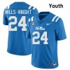 • Youth Shekai Mills-Knight Powder Blue Ole Miss Rebels #24 College Football Game Jersey