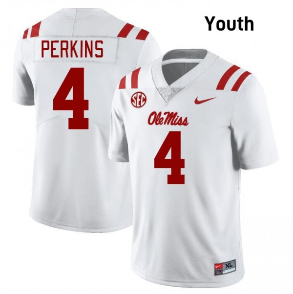 • Youth Suntarine Perkins White Ole Miss Rebels #4 College Football Embroidery Jersey
